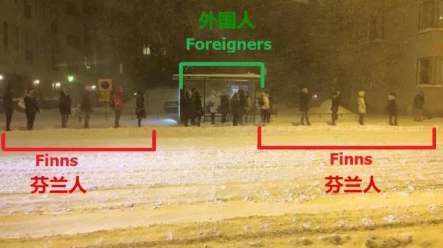 正确排队姿势:疫情期间,网上某村村民排队买菜的情景,走出了“芬兰式排队”的既视感。
