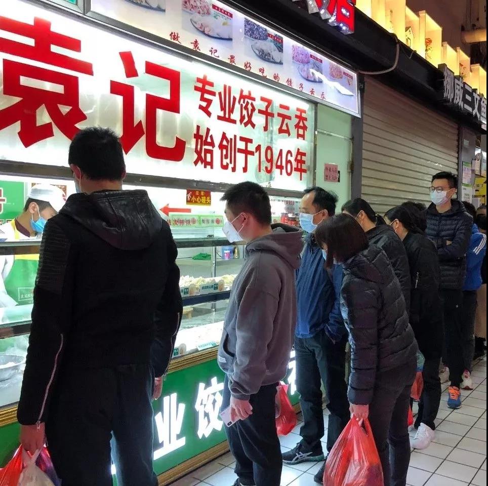 买菜时偶遇熟人,不必握手拥抱,保持一米以上距离。排队时,距离也要远一些哟~