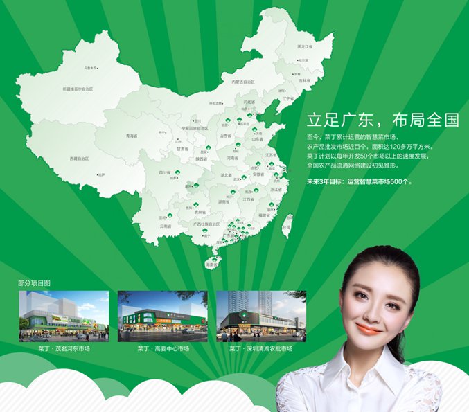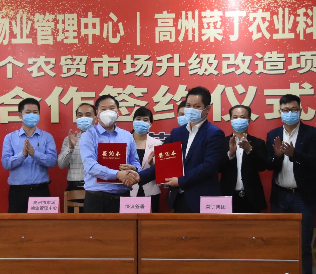 3月18日,菜丁与茂名高州市市场物业管理中心正式签约,高州市市场物业管理中心把属下的21个农贸市场交由菜丁进行升级改造及经营。