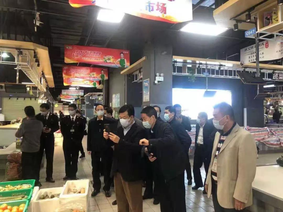 在菜丁工作人员忙碌落实防疫、宣传、食品安全检验等工作的同时,各菜丁市场也迎来了地方政府相关领导前来视察监督疫情防控工作。