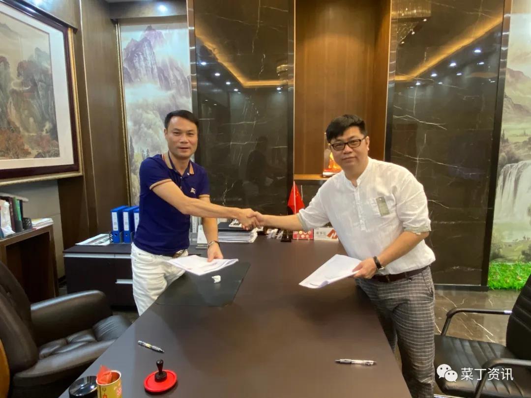 5月13日,鹤山市喜悦新天地投资管理有限公司董事长曹忠喜与菜丁集团总裁李毅签署了加盟菜丁合同。