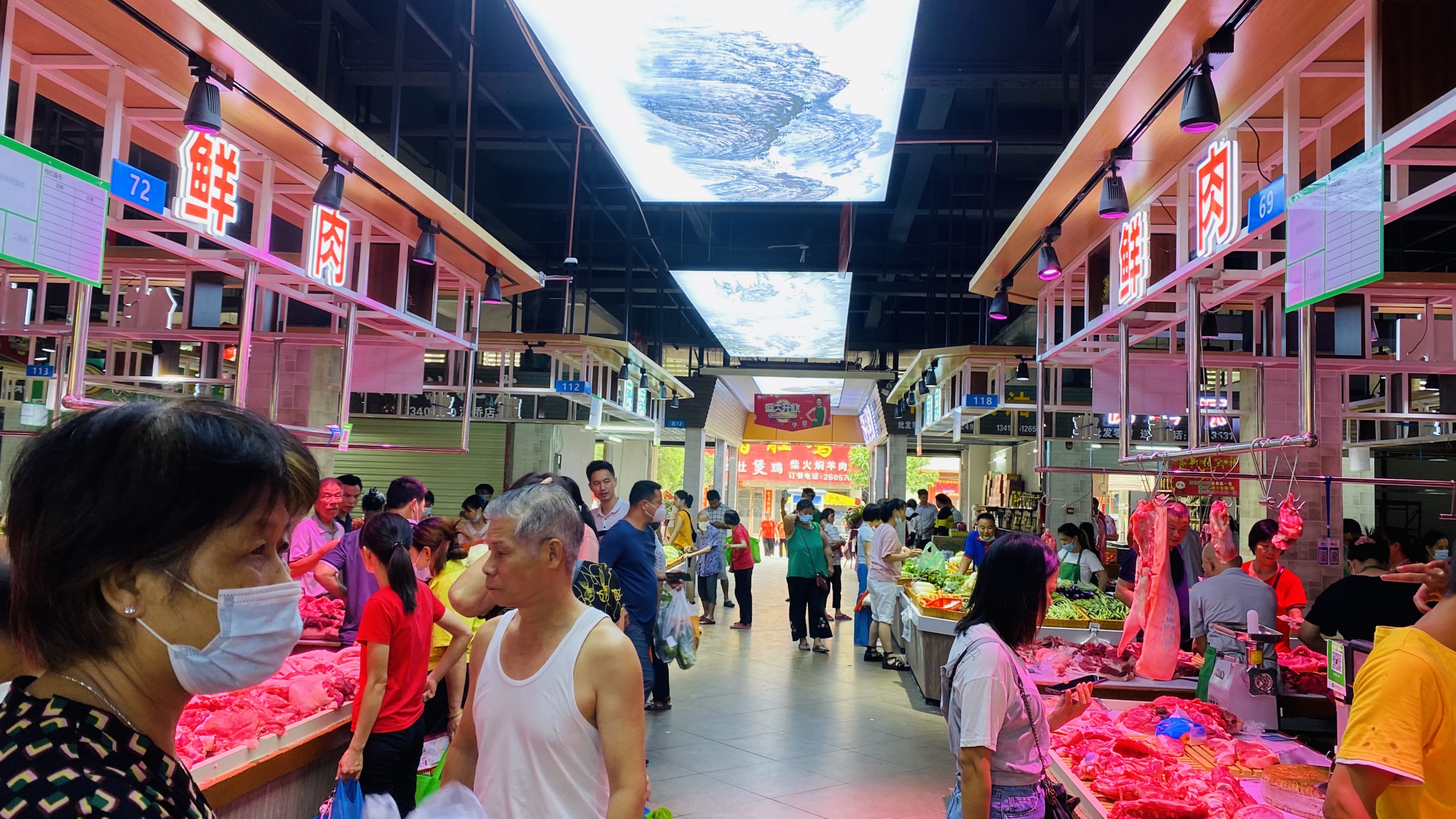 市场还安装了菜丁专属防臭系统、防积水系统、新风系统。走进市场,空气清新,入眼的是豪华的装修、整洁的地面与宽敞明亮的购物环境。据了解,市场还配备了专业的保洁团队,全天候清洁维护、定时消杀,确保市场环境干净、卫生、安全。