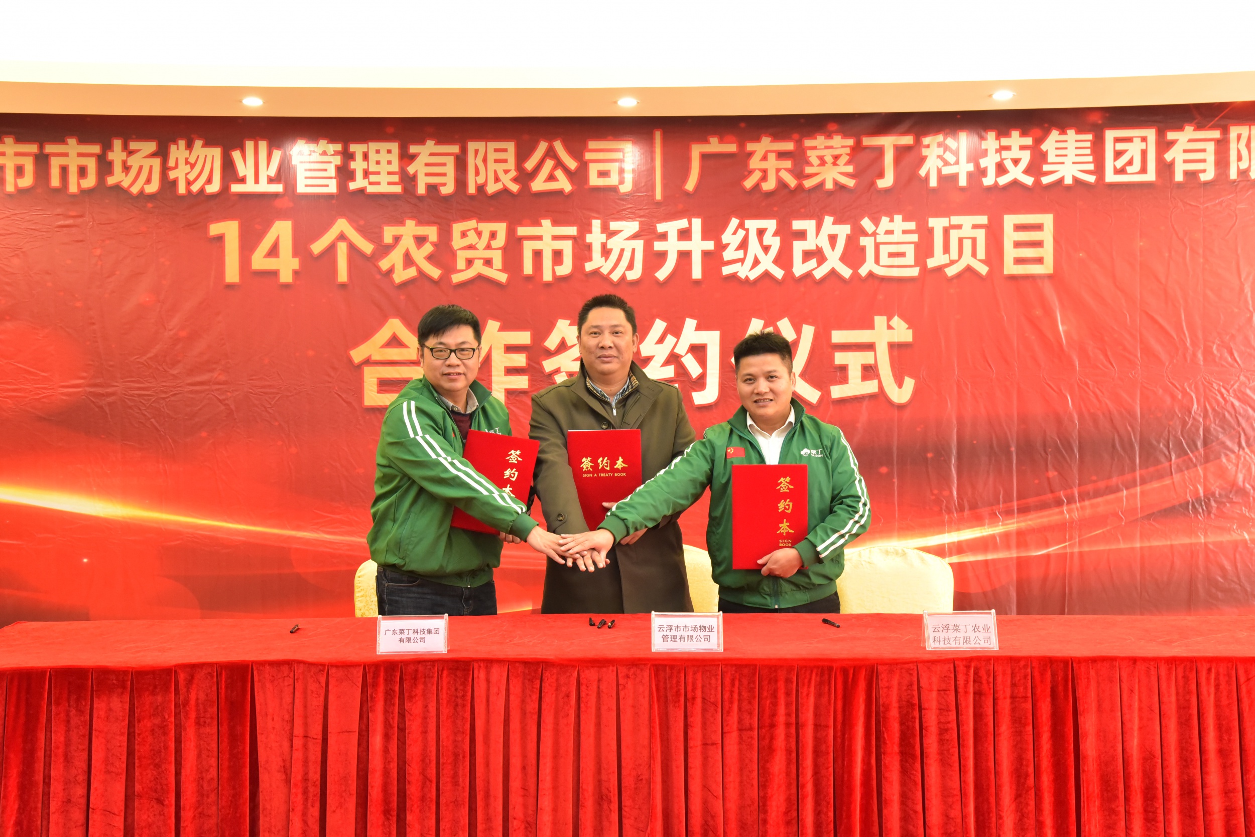12月30日,云浮市市场物业管理有限公司与广东菜丁科技集团有限公司正式签约,将下属的中心市场、罗桂桥市场、建设路市场、西街市场、夏洞市场、腰古市场、思劳市场、麦洲市场、麦洲猪苗市场、安塘市场、杨柳市场、小河市场、腰古猪苗市场、腰古旧市场等14个农贸市场交由菜丁进行升级改造及经营。
