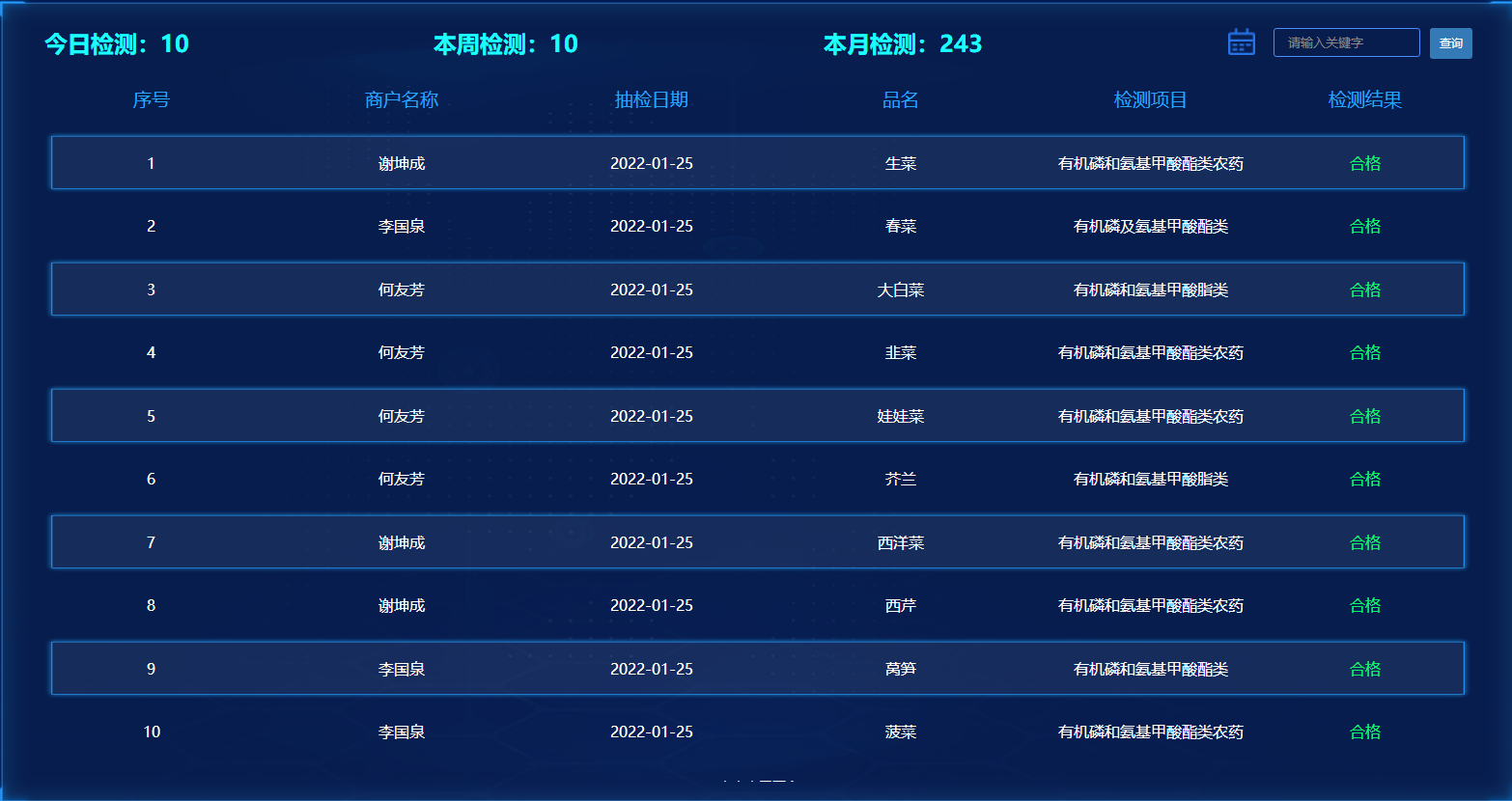 同时,每日都有专人对场内食材进行抽检,并将检测结果公示在数据大屏上,市民可在屏幕前随时查看抽检结果,食品安全更有保障。