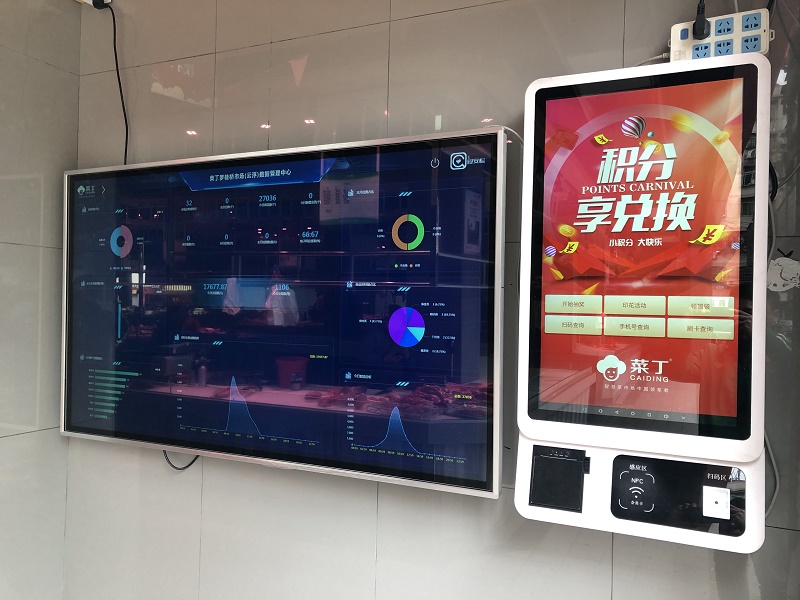 图左:大数据显示屏上,市场每日交易数据、消费排行、客流情况等信息一览无余。
